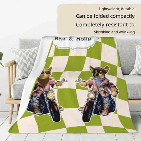 Custom Pet Blanket With Motorcycle Riding – 2 Pets